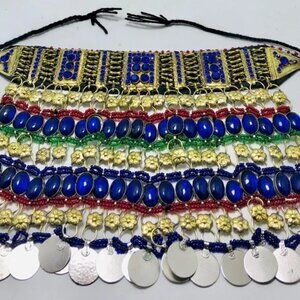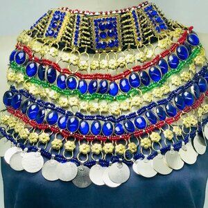 Blue Stone Beads Choker Necklace, Afghan Tribal Choker Necklace, Boho Statement