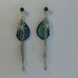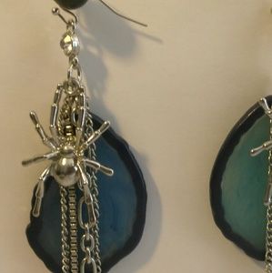 Beautiful dangling Blue stone with spider earrings. This earring we're a gift and I have never worn them.