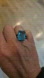 Stunning blue stone glass? ring in a size 6.25. There are clear CZs, rhinestones, or crystals on the sides. The stone is a little loose but fully secured. Beautiful!! Good pre-owned condition.