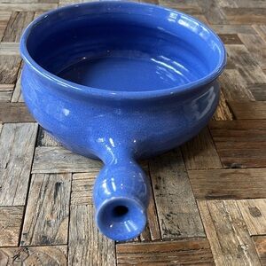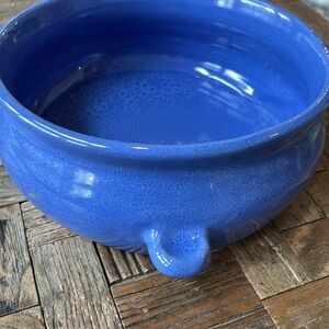 RK Wachau Potrery Austria Large Blue Stoneware Serving Bowl for Soup/Chili/Beans. Beautiful color! 8 1/2” Diameter with 4” handle. Not quite as bright as it appears in photos(last photo shows truest color)