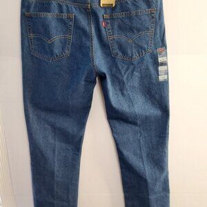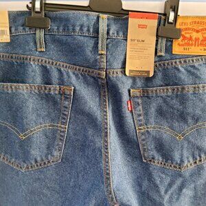 The product is a pair of Levi's 511 Slim Fit Jeans in a new with tags blue color, specifically tailored for men in a size 38x32. These jeans feature a medium wash and are made from a cotton blend denim fabric. The slim fit style is designed to be slimming and includes stretch for added comfort and flexibility. With a zip and button closure, these jeans are a stylish and practical addition to any man's wardrobe, suitable for everyday wear or casual occasions.