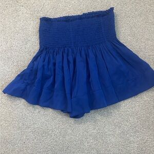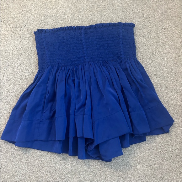 Elegant strapless top with ruffled design. Perfect for casual or dressy occasions. Vibrant blue color adds a pop to any outfit.