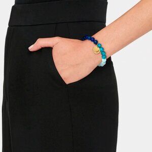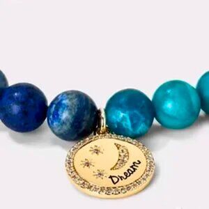 Get ready to shine with this 14K Gold Dipped Cubic Zirconia Charm Beaded Bracelet. This wonderful natural stone bracelet is handmade with the following natural 8mm beads: Amazonite, Blue Apatite, Lapis Lazuli. Each bead is carefully polished, connected with an elastic cord. The bracelet inner size is about 6 inches, stretchy to fit most wrists. Also completely non-reactive on sensitive skin. Please take off the bracelet when you take a shower or wash your face, so that the beads will retain their brightness for longer.