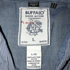 Long sleeve, collared, 2 front pockets w/ button closure, no stretch fabric, no stains/fabric damage, 100% cotton. Preloved