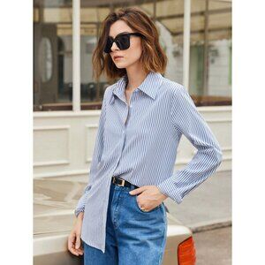 Blue Striped Button-Down Shirt Long Sleeve Plazacore Business Minimali