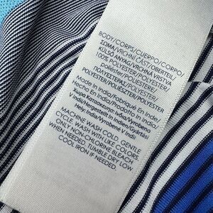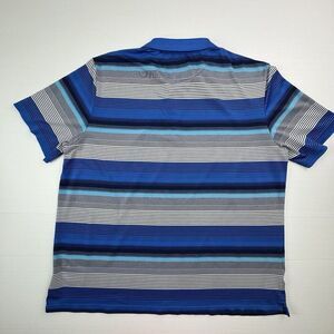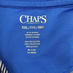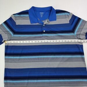 This Chaps polo shirt has a blue and white striped design with a collared neckline and button closure. Size XXL ensures a comfortable fit for big and tall men.
