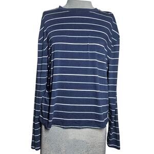 Blue Striped Long Sleeve Cotton Blend Top Size Medium