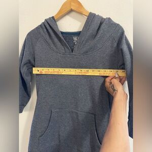 Stylish blue striped hoodie with front pockets. Perfect for casual wear.