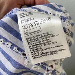 Keywords: off shoulder top, striped top, eyelet top, bohemian top, summer top, casual top, blue and white top, vacation top, beach top, womens top, elastic neckline