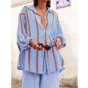 Blue Striped Oversized Button Down Shirt Long Sleeve