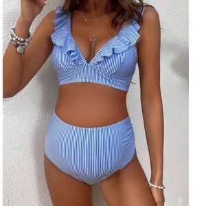 Blue Striped Ruffle Bikini