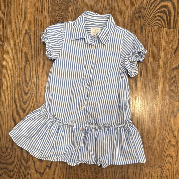 This stylish blue striped kids ruffle dress is perfect for any occasion. Made with comfort in mind, it's a great addition to your child's wardrobe.
