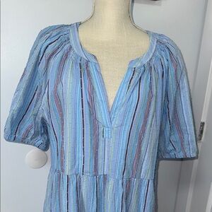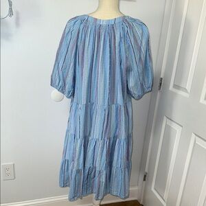 Elegant blue striped dress with a relaxed fit. Perfect for casual outings.