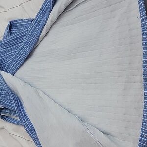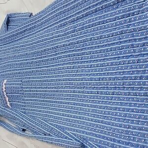 Experience comfort and style with this blue striped women's robe. Perfect for lounging and relaxation.