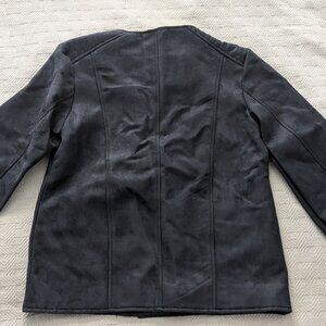 Blue Suede Biker Jacket with Silver Zipper, Size Medium