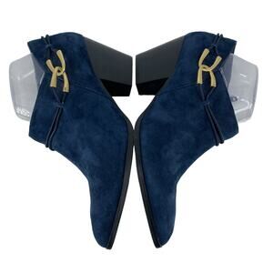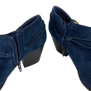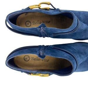 Blue Suede Bootie 8.5 M BELLA VITA Gold Accent Heel Ankle Boot Shootie Western