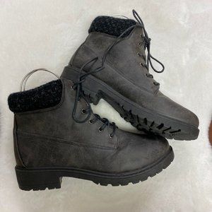 Blue Suede Shoes Sweater Top Lace Up Boots Chunky Heel, size 10