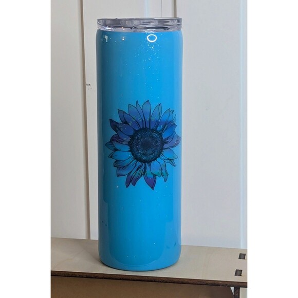 Blue Sunflower Resin Coated-Skinny Straight Tumbler, 20oz