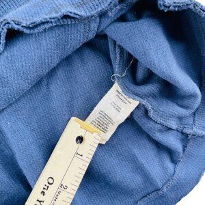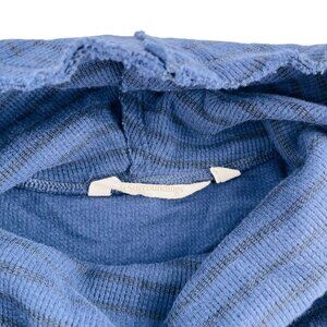 This relaxed-fit pullover top offers a cozy cowl neck design and a convenient front pocket. It’s crafted from a soft ribbed knit material, ensuring comfort and warmth during cooler seasons. Its versatile blue color and stylish stripes make it a suitable addition to a casual wardrobe.
