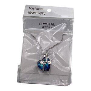 Blue Swarovski Crystal Heart Necklace W/ Silver Stars Pendant Adjustable Chain