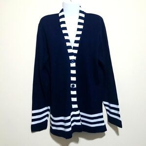Preowned Blue and White LongSleeve Sweater in good condition. length 31inches pit to pit 21inches