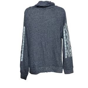 The hoodie in the image is a Derek Heart brand cowl-neck sweatshirt.