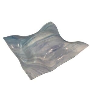 Blue Swirled Art Glass Trinkets Dish‎ Bowl 9.5"x9.5"x2"