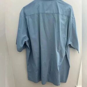 Blue Swordfish embroidered Columbia short sleeve button up. It has one small spot on on the side inseam