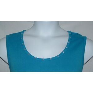 Blue Sz XL Soft Stretchy Cotton Studded Open Jacket & Tank Top 2 Pc Set RAFAELLA