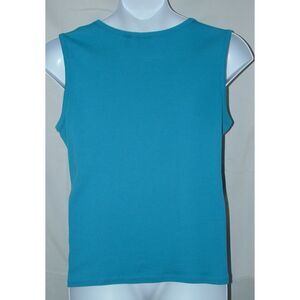This set is made by Rafaella. It is made with 100% stretchy cotton and hand washable. The tags are faded and hard to read, but this set measures like a size XL. The sleeveless shirt measures 19 1/2" across the bust and is 23" in length from the back of the neck. The matching open jacket measures 24 1/2" from the seam at the back of the neck. This set is very gently worn, in excellent condition except for a tiny spot on front of the tank, (see pic). Very nice set.