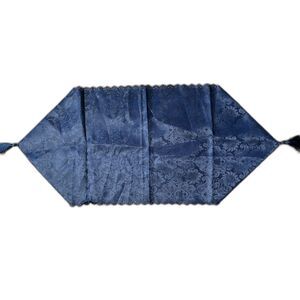Navy Blue Table Runner Jacquard Tablecloth Floral Tassel Wedding Party Decor Retro