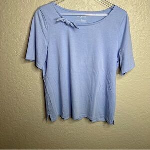 Blue Talbots Short Sleeve Blouse W/ Neckline Bow