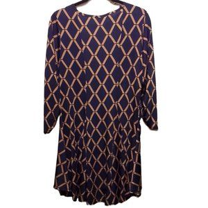 Blue Tan Diamond Print Hi-Lo Tunic Sz Large not 2X