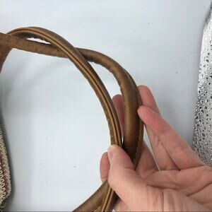 Blue & Tan Woven Shoulder Handbag Faux Leather Straps Beachy Hobo Boho Bag