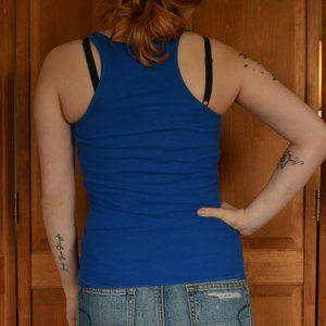 Blue Tank from abercrombie kids For reference: Model 125lb, 5ft 3in