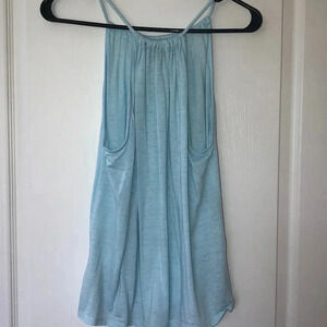 Blue, high neck tank. Semi sheer, never worn.
