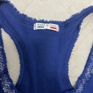 Blue Tank Top - Sequin Trim Around Top - Racerback Tank - LIKE NEW - Size Small Tank - Made and Purchased in Italy - Worn Once 🧡