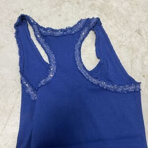 Blue Tank Top - Sequin Trim Around Top - Racerback Tank - LIKE NEW - Size Small