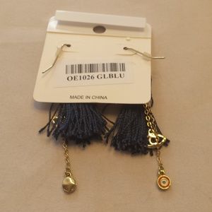 Blue Tassel Earrings with Chain Dangles