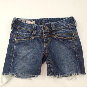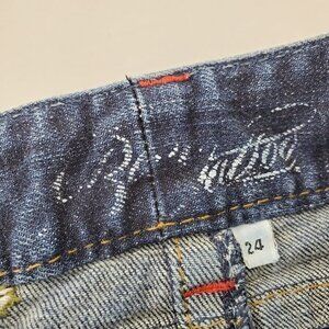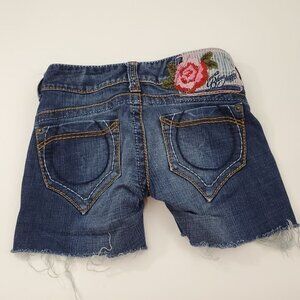 Blue Tattoo Jean Shorts 24 Cut Off Embroidered Denim Blue Rose Distressed