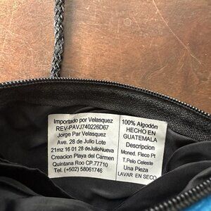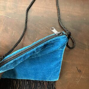 Beautiful Teal Blue Boho Embroidered Floral Guatemalan Crossbody Bohemian Purse Zip Closure Fringe trim.