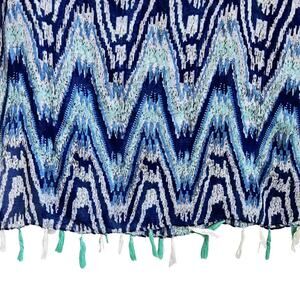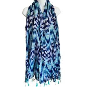 Blue Teal White Sheer Tasseled Zig Zag Geometric Scarf 40" x 72" Rectangular