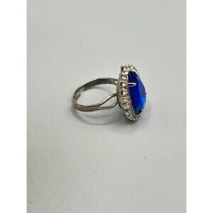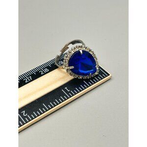 This elegant ring features a striking blue teardrop stone, elegantly surrounded by shimmering rhinestones. An adjustable band ensures a comfortable fit for most fingers.