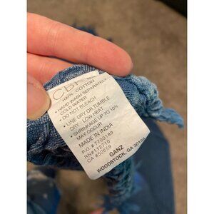 Blue Textured 100% Cotton Throw Blanket With Tassel Edges