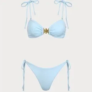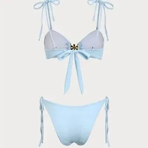 Blue Textured Drawstring Bikini Set