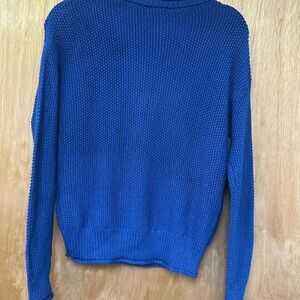 This blue crewneck sweater showcases a textured knit pattern, offering both style and warmth. Its standard fit and ribbed details at the collar and hem make it a versatile piece for any wardrobe. The long sleeves and quality knit suggest a cozy material, perfect for cooler days.
