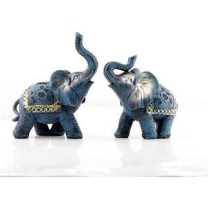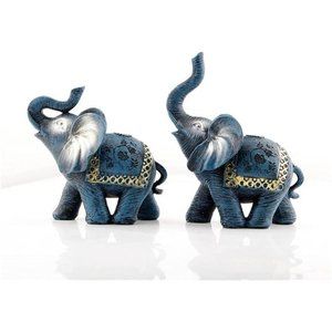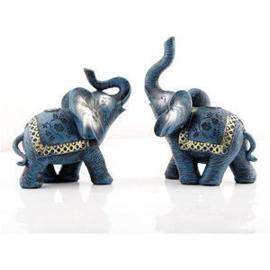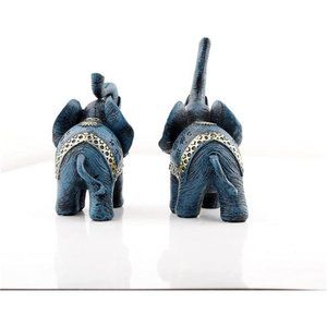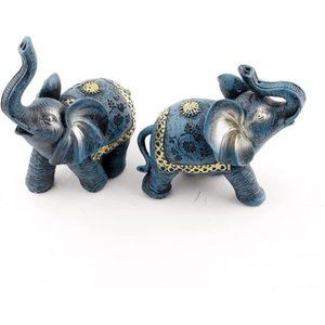 Blue Thai Couple Elephants Figurines Statues Elephant with Trunk Up Gifts