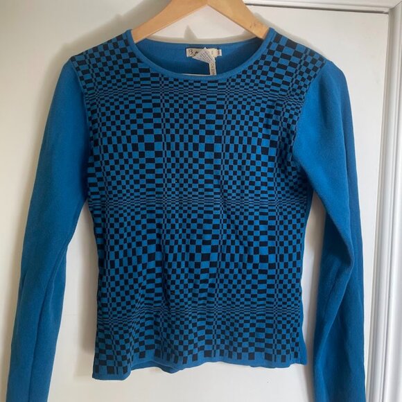 Blue Thick long sleeve top, size S. Cool checkered pattern on the front!