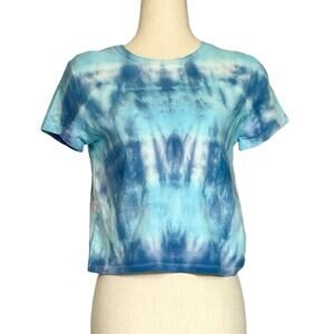 Blue Tie Dye Crop Top Women XS | Upcycled Y2K Fall Layering Tee