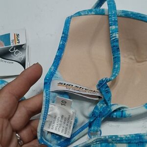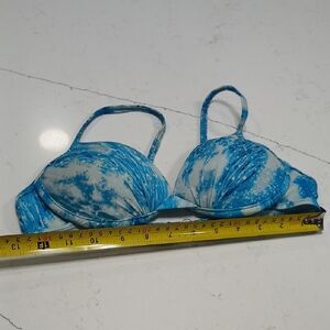 Stylish blue tie-dye bikini set. Features a unique pattern with adjustable straps.